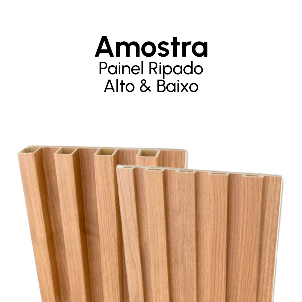 Contém duas unidades de 10cm, sendo uma do Painel Ripado WPC Alto e uma do Painel Ripado WPC Baixo