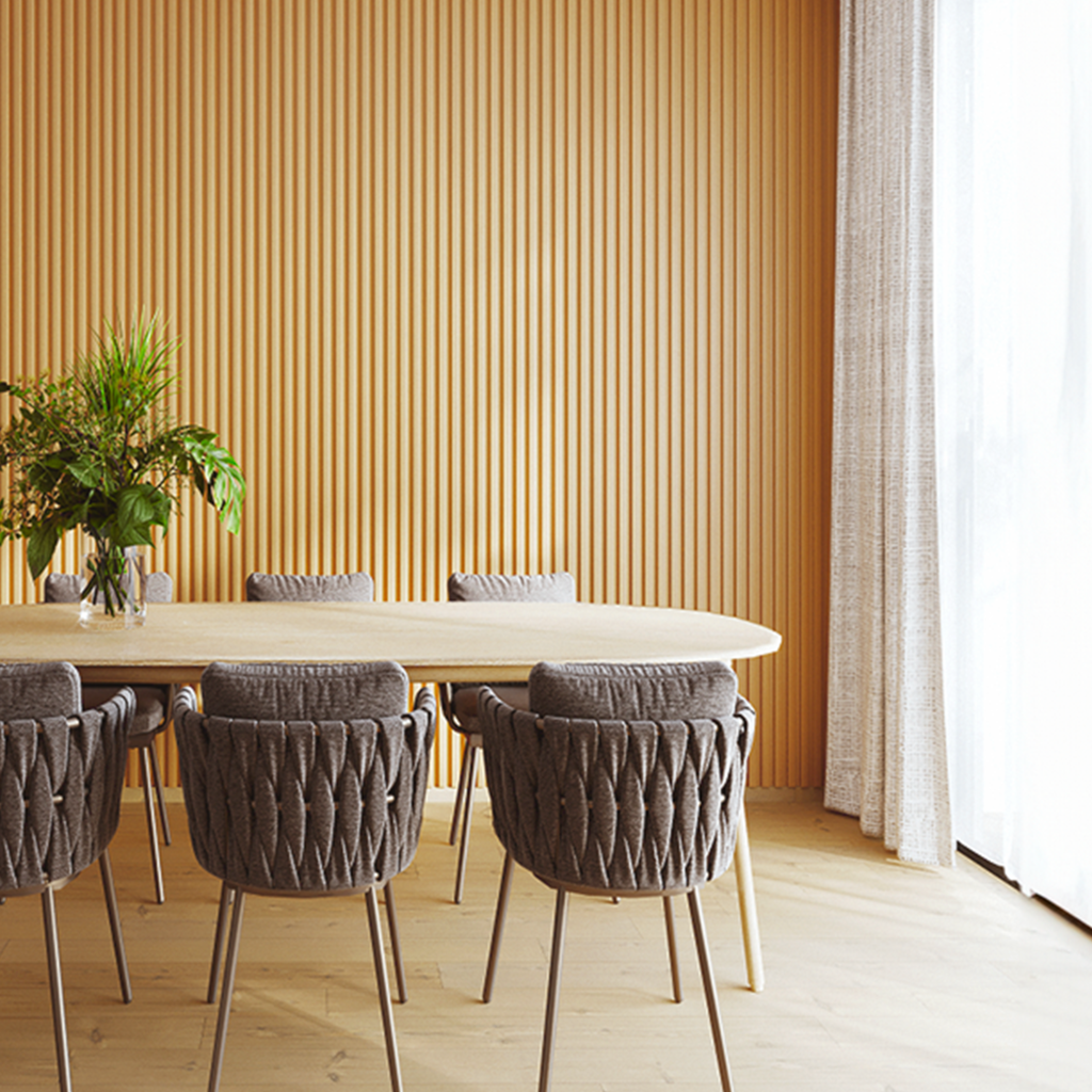 Design Versátil: Com seu padrão ripado, este painel é a escolha ideal para adicionar textura e elegância às paredes interiores. Seu design versátil se encaixa perfeitamente em ambientes com decoração moderna, clássica ou contemporânea.