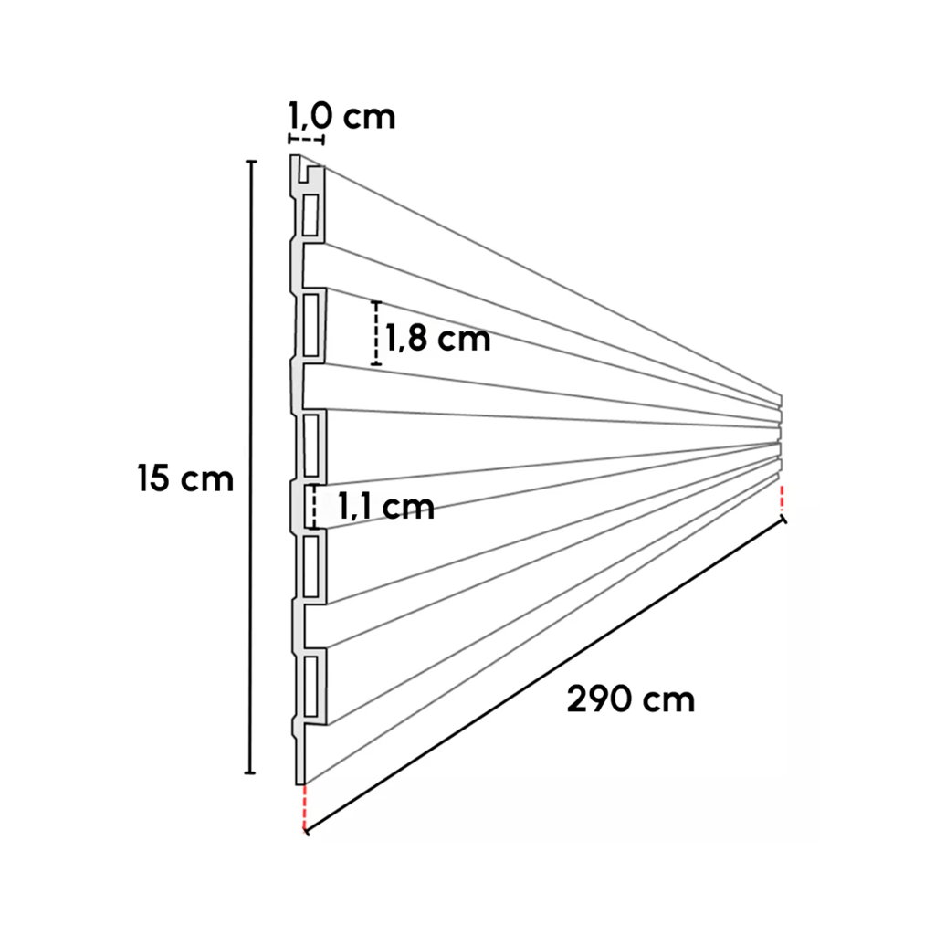 Dimensões Imponentes: Comprimento de 290cm (2,90m), largura de 15cm e espessura de 1cm, cada placa de nosso Painel Ripado Interno Baixo proporciona uma presença majestosa e sofisticada em qualquer ambiente.